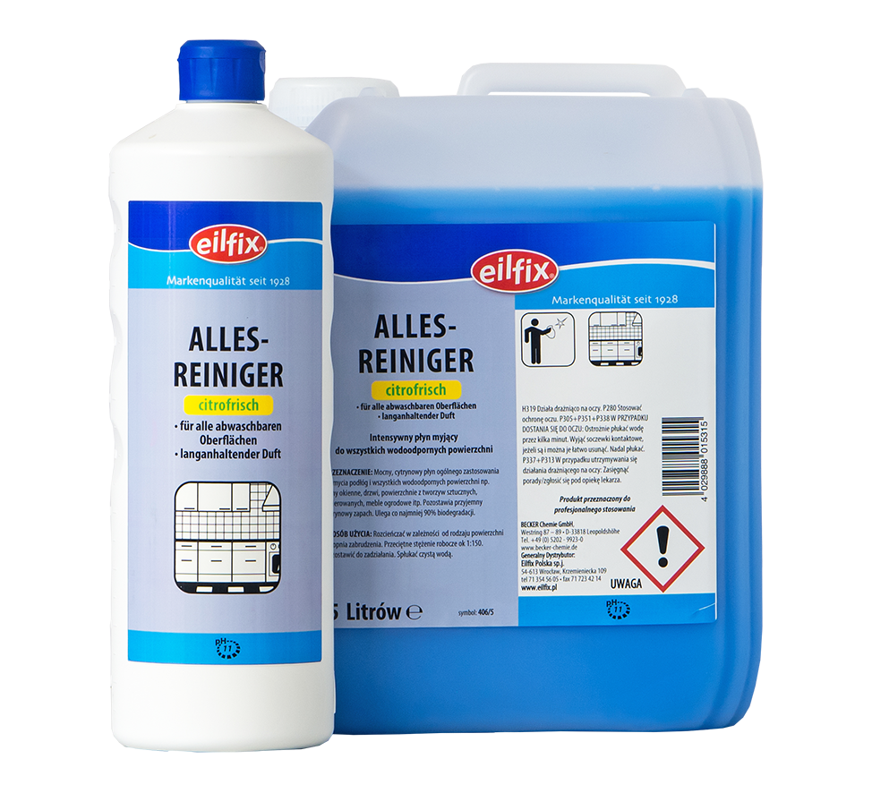 Uniwersalny cytrynowy preparat do ogólnego zastosowania, szczególnie mycia podłóg oraz wszelkich wodoodpornych powierzchni np. ramy okienne, drzwi, powierzchnie z tworzyw sztucznych, elementy lakierowane, meble ogrodowe itp. Przeciętne stężenie robocze ok 1:5 do 1:100. Odczyn pH ok 10.
