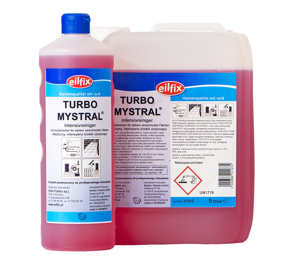 Alkaliczny, intensywny środek czyszczący. Przeznaczony do czyszczenia elementów z tworzyw sztucznych i stali nierdzewnej. Usuwa tłuste i uporczywe zabrudzenia. Czyści plandeki, meble plastikowe, przyczepy kempingowe, namioty i meble ogrodowe. Idealny do gruntownego mycia podłóg. Skuteczny do mycia posadzek kamiennych, lastryka oraz powierzchni porowatych (np: klinkier). Usuwa tłuste i uporczywe zabrudzenia. Idealny do zastosowań przemysłowych. Może być stosowany w maszynach czyszczących oraz myjkach ciśnieniowych. Typowe stężenia robocze od ok 1:5 do ok 1:20. pH ok 14.